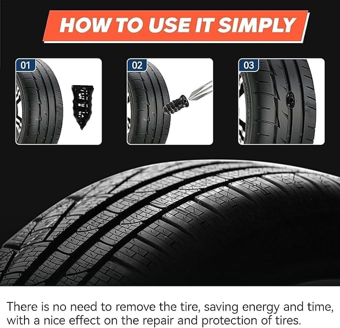 Simply insert the rubber nail into the puncture, and it will expand to create a secure, airtight seal. Suitable for cars, motorcycles, and bicycles, this repair solution is durable, weather-resistant, and perfect for emergency fixes on the go. Stay safe and keep your tires in top condition with this reliable repair tool!